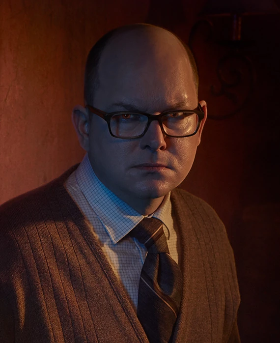 As an energy vampire, Colin Robinson's origin is unclear.[6] He is unsure if his own parents are energy vampires; he describes his father as being a “RuPaul type” in the twenties and his mother, who he can barely remember, was “just boring, still is”.[7] According to his roommate Laszlo, Colin “came with the house” they reside in. He lived in the Staten Island residence with fellow vampires Laszlo, Nadja and Nandor from around the 1970s. Nandor's former familiar Benjy[1] and his current familiar Guillermo have also shared his home. He worked in an office and frequently fed off his co-workers by boring them with inane conversations.[8] Outside of work hours, Colin gained energy by aggravating his roommates[9] and trolling people online.[10]