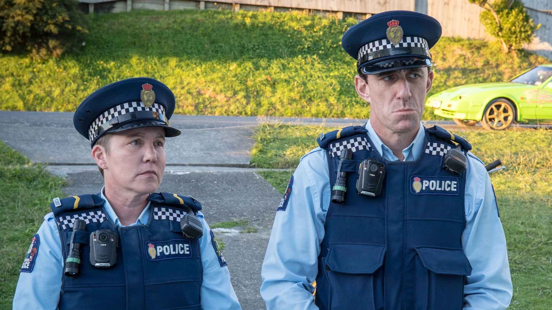 The officers leave the car so Sharon and Shane can be alone together, but when Sharon insists she cannot commit to a relationship with a dead man, Shane suddenly drives the Nissan away with her trapped inside. The officers chase after it until it gets blocked by a van. The officers attempt to free Sharon from the car but get locked in with her as it heads to the bank it previously drove off from. The officers request backup from Maaka, but Shane finally stops just short of the bank when Sharon says she’ll think of him as “a wanker” if he kills her. Maaka’s drone bounces off the car and breaks.