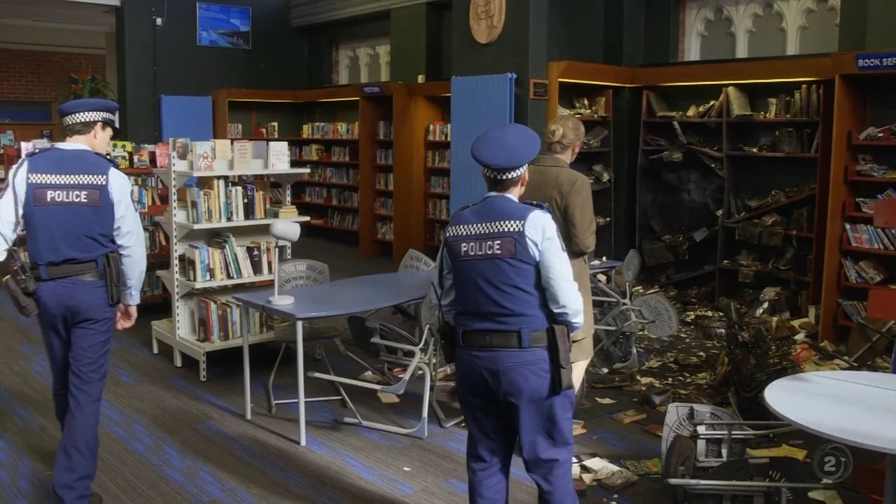 O'Leary and Minogue witnessed a meteorite crashing into a street in Naenae. They checked on the residents and noticed two Neighbourhood Watch members, Bill and Molly, acting strangely. Soon afterwards, the officers had to follow up on several reports of petty criminals being apprehended by a vigilante group with superpowers. When the Unit investigated the meteorite in the station lab, Parker accidentally touched it and became magnetic, leading O'Leary to realize that the meteorite’s radiation was giving people superpowers. The officers left to arrest a robber apprehended by the group, and while driving back, they rescued a man being pursued by the vigilante group. The car broke down and the man was dragged out the car by an electric force. The officers came face-to-face with the vigilante group, The Revengers, consisting of Bill, Molly and fellow Watch member Google Girl. George, Molly’s neighbour, arrived at the scene requesting to join the group, but was declined. Upset, he blasted Bill with water from his hands, and he fought back with his electrical powers. This caused a shockwave that knocked out all the superheroes and depleted their powers.[21]
