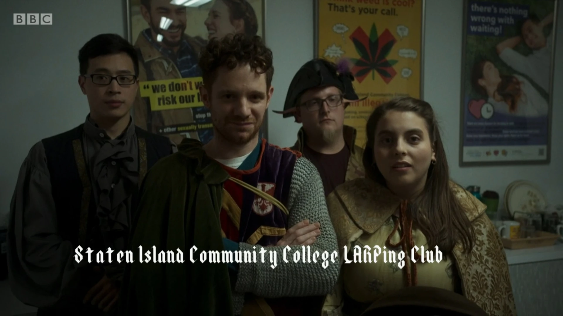 Staten Island Community College LARPing Club is a live-action roleplaying society that was targeted by the local vampires due to the group’s supposedly high number of virgin members. The group appears in What We Do in the Shadows (TV series).